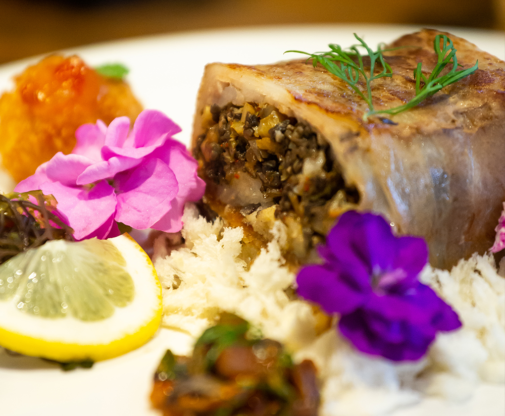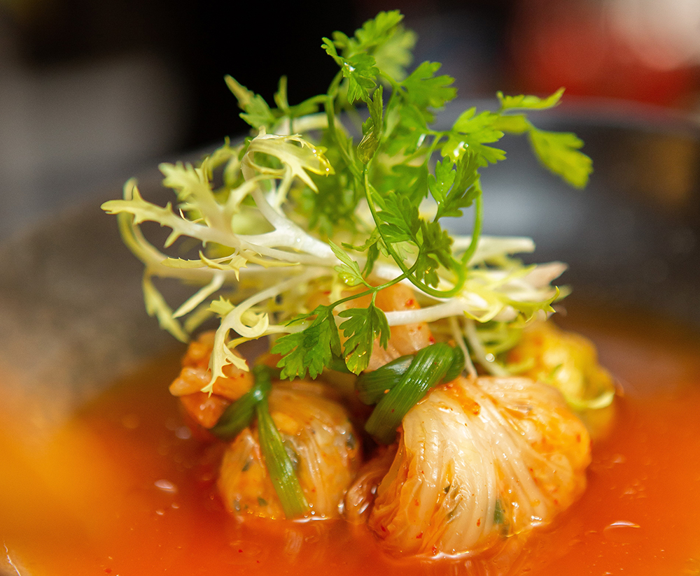 Left) The Faithful Collaboration with Napa Cabbage Kimchi and Seafood, Right) The Fantastic Orchestra of Kimchi and Chicken